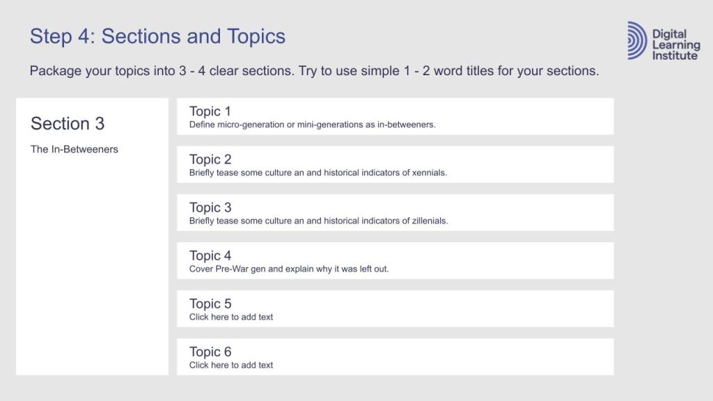 Choosing the mode for the project was easy. I selected the blended learning approach. I wanted to accommodate all learners’ preferences, and many opted for short self-paced modules and social learning experiences. Given that this course is about intergenerational communication across all mediums, it makes the most sense to incorporate digital and live opportunities to examine and practice written and verbal communication through multiple modes.